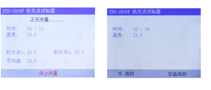 (2) 當試樣軟化點>80℃,32.0℃~160.0℃,試驗浴液體使用甘油作為加熱介質(zhì)